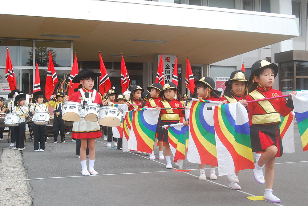 今日は年長組さんが消防ふれあいフェスティバルの オープニングセレモニーでマーチングの発表をしてきました。 今回はコスチュームを身にまとい、そして3回目の発表ということで とてもいい表情で演奏・演技してくれたひばりっ子達です。 沢山のお客さんに見守られ、大盛況のオープニングセレモニーでした。